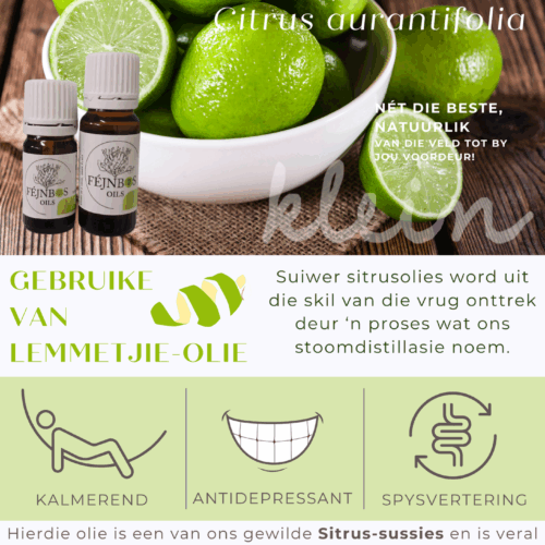 Essensiële olies: Cinnamon Bark, Clove, Eucalyptus, Lemon, Rosemary, Peppermint & Frankincense